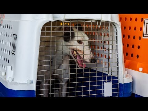Greyhound Pets of America-WI -- Greyhounds arrive from Florida - Greyhound Dog Rescue Florida - Volunteers work together to bring in a haul of ex-racing greyhounds from a Florida track.