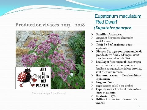 Conseil jardinage: Fiche technique: Eupatorium maculatum ‘Red Dwarf’ (Eupatoire pourpre): - Eupatorium Maculatum Red Dwarf - L'Eupatorium purpureum 'Red Dwarf', s'intègre parafaitement aux jardins naturels ! Il se caractérise par une forme nouvelle, avec un développement moyen, ...